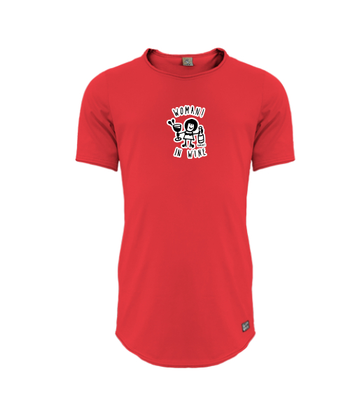Mens T-shirt PARKOUR LONG for man with design 1347 WOMAN IN WINE 2 in color RED