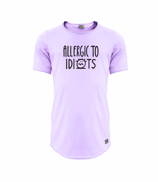 Mens T-shirt PARKOUR LONG for man with design 1354 ALLERGIC TO IDIOTS in color LAVENDER