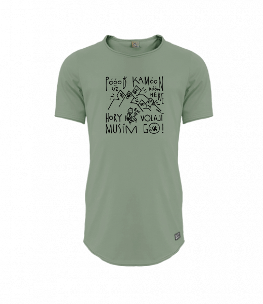 Mens T-shirt PARKOUR LONG for man with design 1368 POOOĎ KAMOON HORY MUSÍM JÍT GO in color OLIVA