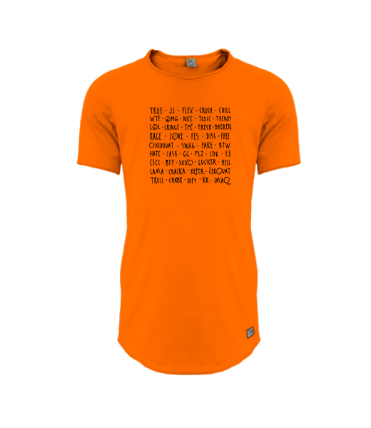 Mens T-shirt PARKOUR LONG for man with design 1372 DĚTSKÝ SLANG in color SIGNAL ORANGE