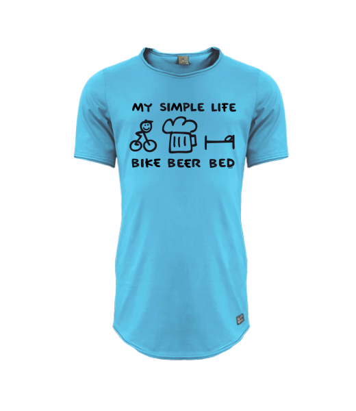 Mens T-SHIRT UAX PARKOUR LONG for man with design 1056 BIKE BEER BED in color BLUE ATOLL
