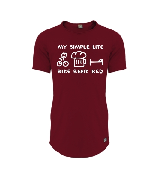 Mens T-SHIRT UAX PARKOUR LONG for man with design 1056 BIKE BEER BED in color DARK RED