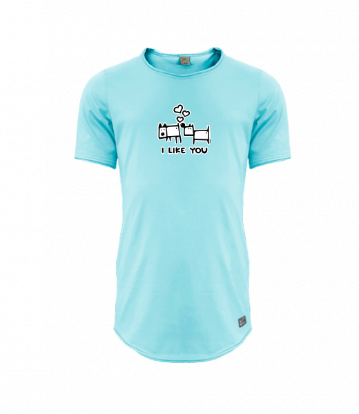 Mens T-SHIRT UAX PARKOUR LONG for man with design 1066 I LIKE YOU in color PASTEL BLUE