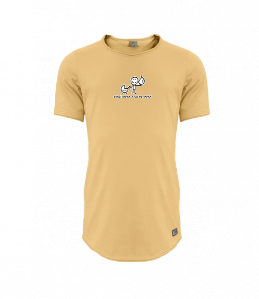 Mens T-SHIRT UAX PARKOUR LONG for man with design 1081 STAČÍ KAPKA A UŽ TO ŤAPKÁ in color MUSTARD