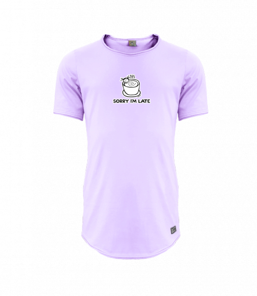 Mens T-SHIRT UAX PARKOUR LONG for man with design 1087 SORRY IM LATE in color LAVENDER
