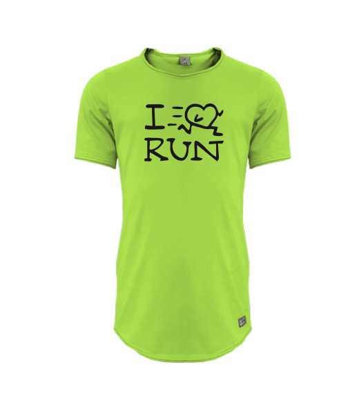 Mens T-SHIRT UAX PARKOUR LONG for man with design 1088 I LOVE RUN in color PARROT GREEN