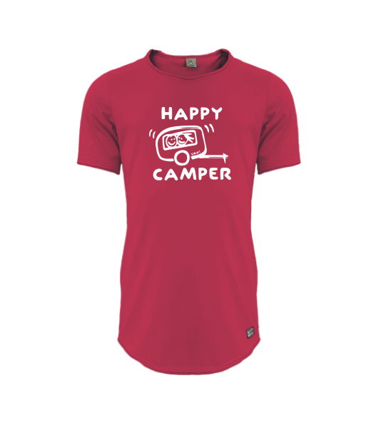 Mens T-SHIRT UAX PARKOUR LONG for man with design 1116 HAPPY CAMPER in color CHILLY PEPPER RED