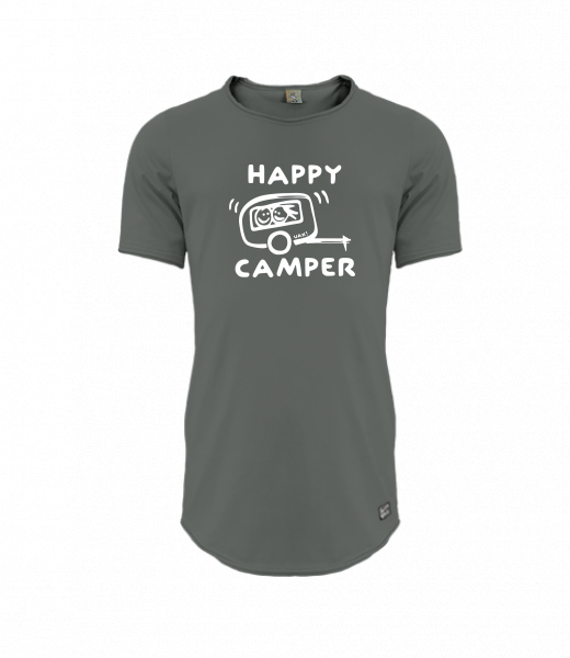 Mens T-SHIRT UAX PARKOUR LONG for man with design 1116 HAPPY CAMPER in color DARK GRAY