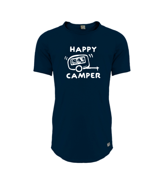 Mens T-SHIRT UAX PARKOUR LONG for man with design 1116 HAPPY CAMPER in color DARK NAVY