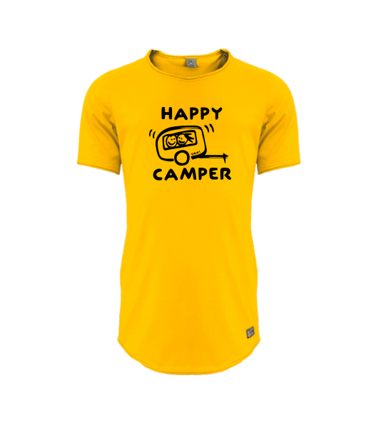 Mens T-SHIRT UAX PARKOUR LONG for man with design 1116 HAPPY CAMPER in color GOLDEN CREAM