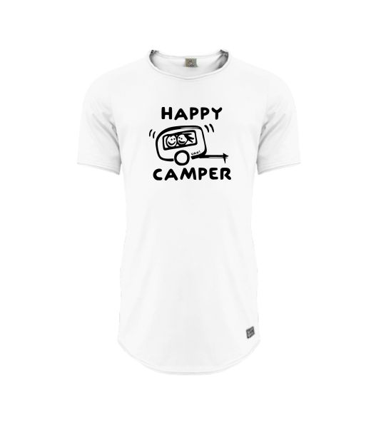 Mens T-SHIRT UAX PARKOUR LONG for man with design 1116 HAPPY CAMPER in color WHITE