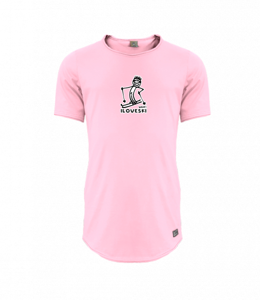 Mens T-SHIRT UAX PARKOUR LONG for man with design 1122 I LOVE SKI in color BABY PINK