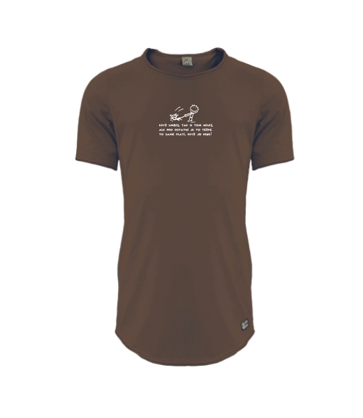 Mens T-SHIRT UAX PARKOUR LONG for man with design 1131 JE TO TĚŽKÉ in color CHESTNUT