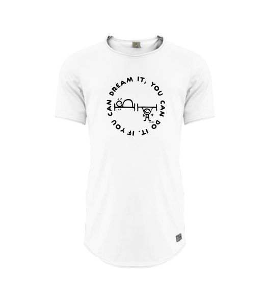 Mens T-SHIRT UAX PARKOUR LONG for man with design 1133 IF YOU CAN DREAM IT in color WHITE