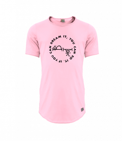 Mens T-SHIRT UAX PARKOUR LONG for man with design 1133 IF YOU CAN DREAM IT in color BABY PINK