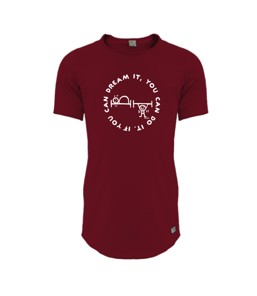 Mens T-SHIRT UAX PARKOUR LONG for man with design 1133 IF YOU CAN DREAM IT in color DARK RED