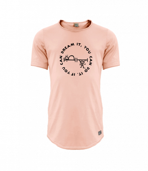 Mens T-SHIRT UAX PARKOUR LONG for man with design 1133 IF YOU CAN DREAM IT in color PEACH