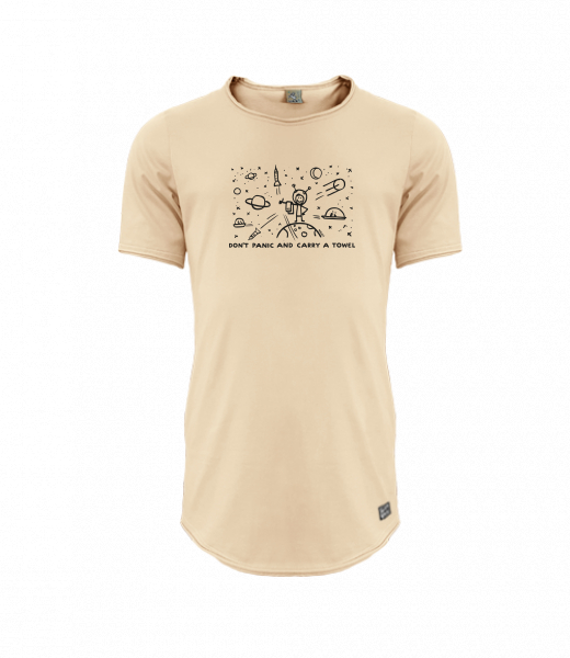 Mens T-SHIRT UAX PARKOUR LONG for man with design 1156 DON'T PANIC GALAXY in color CARAMEL