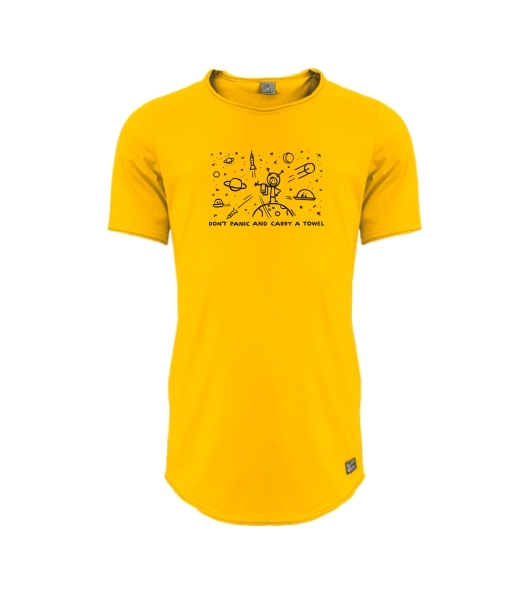 Mens T-SHIRT UAX PARKOUR LONG for man with design 1156 DON'T PANIC GALAXY in color GOLDEN CREAM