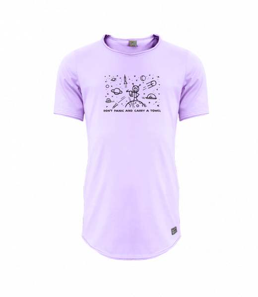 Mens T-SHIRT UAX PARKOUR LONG for man with design 1156 DON'T PANIC GALAXY in color LAVENDER