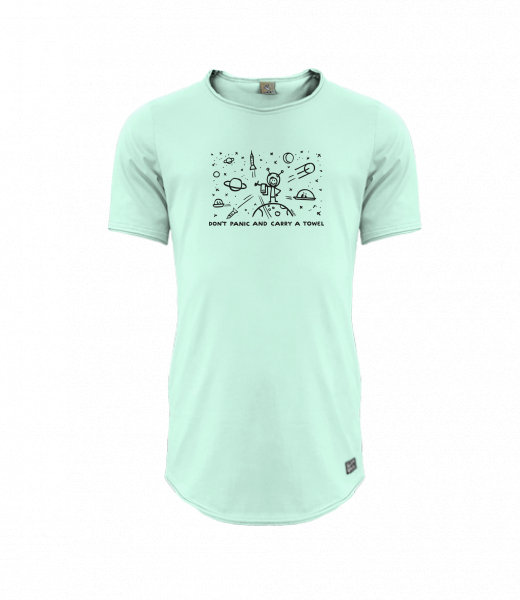 Mens T-SHIRT UAX PARKOUR LONG for man with design 1156 DON'T PANIC GALAXY in color MINT