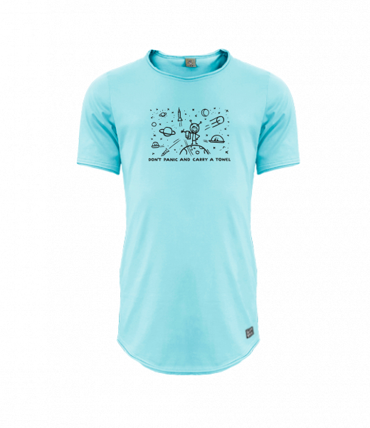 Mens T-SHIRT UAX PARKOUR LONG for man with design 1156 DON'T PANIC GALAXY in color PASTEL BLUE