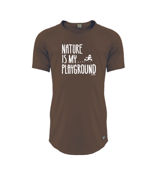 Mens T-SHIRT UAX PARKOUR LONG for man with design 1160 NATURE IS MY PLAYGROUND in color CHESTNUT