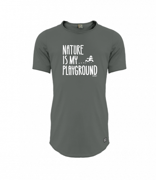 Mens T-SHIRT UAX PARKOUR LONG for man with design 1160 NATURE IS MY PLAYGROUND in color DARK GRAY
