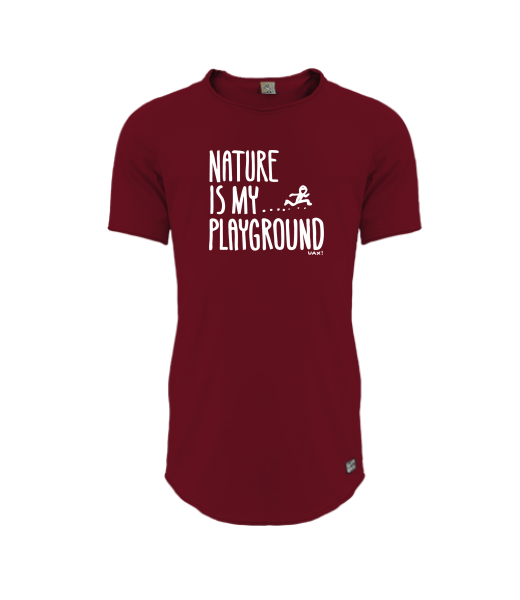 Mens T-SHIRT UAX PARKOUR LONG for man with design 1160 NATURE IS MY PLAYGROUND in color DARK RED