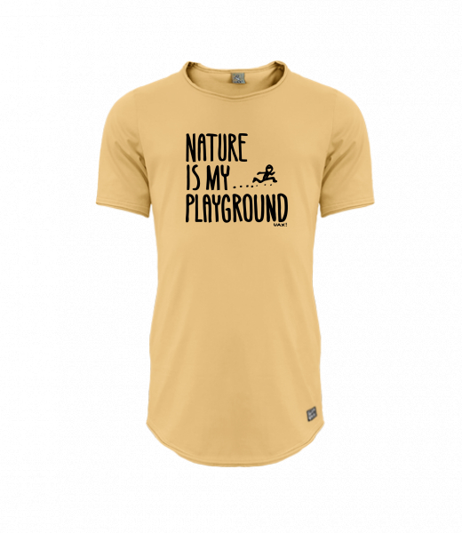 Mens T-SHIRT UAX PARKOUR LONG for man with design 1160 NATURE IS MY PLAYGROUND in color MUSTARD