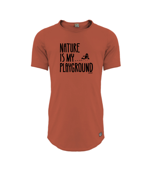 Mens T-SHIRT UAX PARKOUR LONG for man with design 1160 NATURE IS MY PLAYGROUND in color TERRA