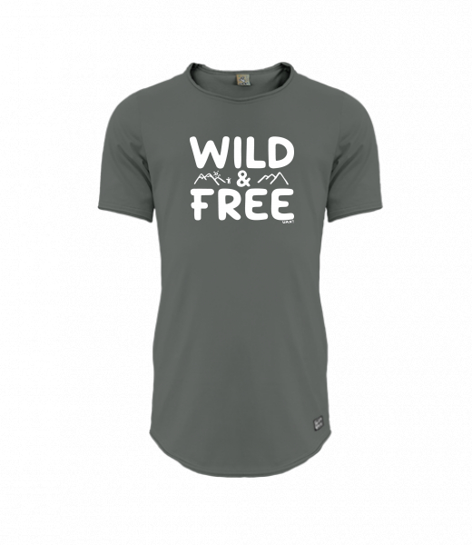 Mens T-SHIRT UAX PARKOUR LONG for man with design 1161 WILD AND FREE in color DARK GRAY