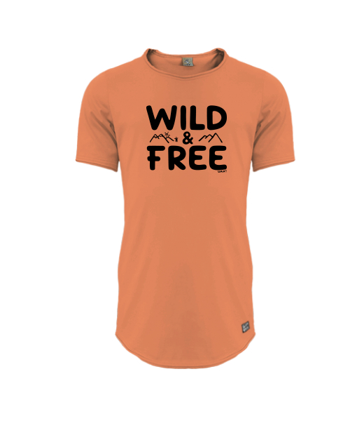 Mens T-SHIRT UAX PARKOUR LONG for man with design 1161 WILD AND FREE in color MANDARIAN ORANGE