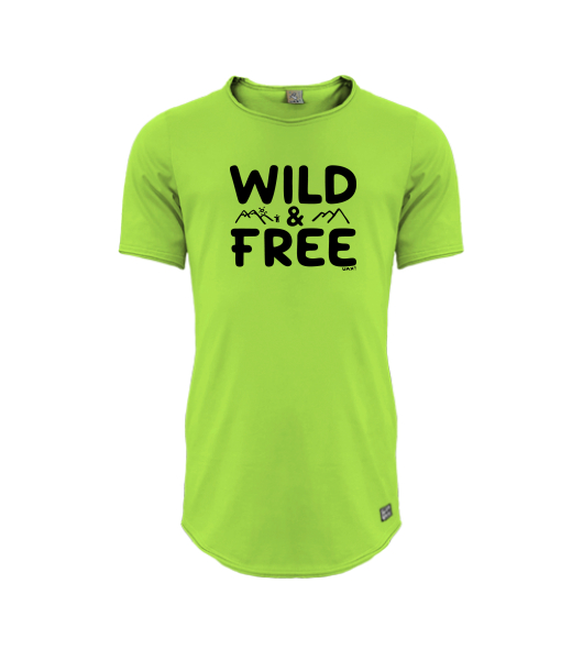 Mens T-SHIRT UAX PARKOUR LONG for man with design 1161 WILD AND FREE in color PARROT GREEN