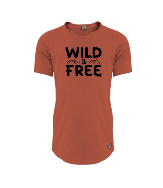 Mens T-SHIRT UAX PARKOUR LONG for man with design 1161 WILD AND FREE in color TERRA