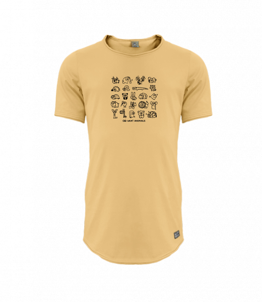 Mens T-SHIRT UAX PARKOUR LONG for man with design 1168 UAX! ANIMALS in color MUSTARD