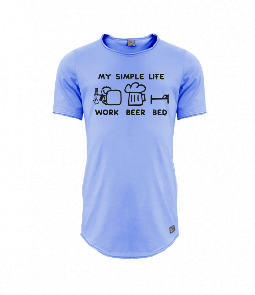 Mens T-SHIRT UAX PARKOUR LONG for man with design 1211 MY SIMPLE LIFE WORK BEER BED in color VERY PERI