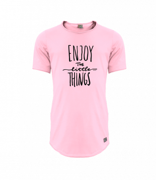 Mens T-SHIRT UAX PARKOUR LONG for man with design 1222 ENJOY THE LITTLE THINGS in color BABY PINK