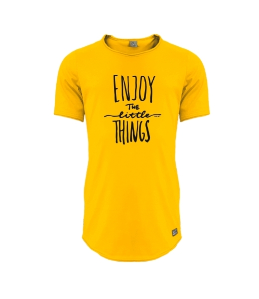 Mens T-SHIRT UAX PARKOUR LONG for man with design 1222 ENJOY THE LITTLE THINGS in color GOLDEN CREAM