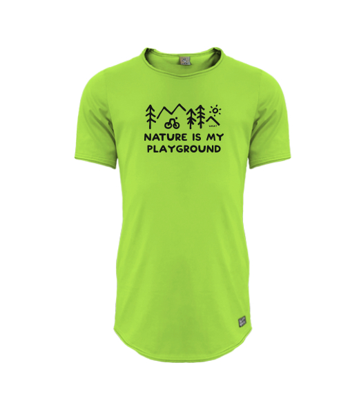 Mens T-SHIRT UAX PARKOUR LONG for man with design 1223 NATURE IS MY PLAYGROUND in color PARROT GREEN