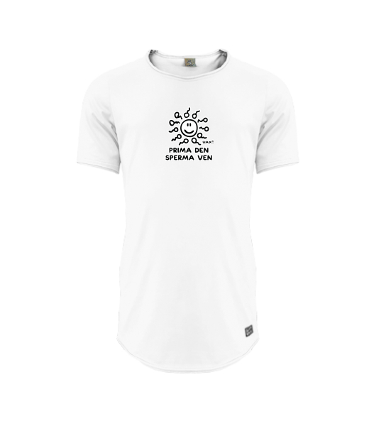 Mens T-SHIRT UAX PARKOUR LONG for man with design 1265 PRIMA DEN SPERMA VEN in color WHITE