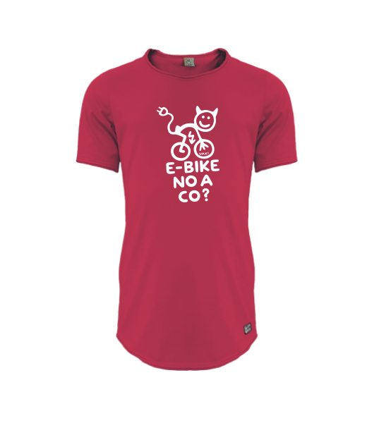 Mens T-SHIRT UAX PARKOUR LONG for man with design 1291 E-BIKE NO A CO? in color CHILLY PEPPER RED