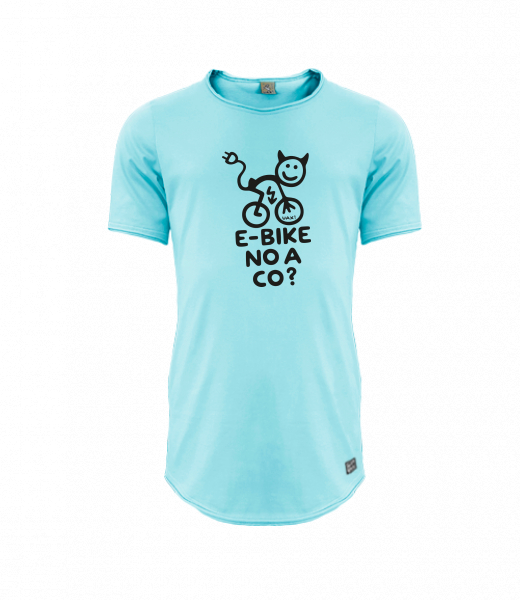 Mens T-SHIRT UAX PARKOUR LONG for man with design 1291 E-BIKE NO A CO? in color PASTEL BLUE