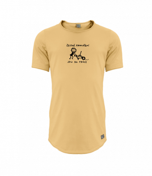 Mens T-SHIRT UAX PARKOUR LONG for man with design 1305 ČESTNÉ PROHLÁŠENÍ JDU DO PRÁCE 2 in color MUSTARD