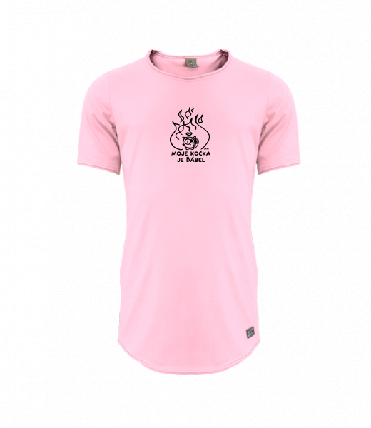 Mens T-SHIRT UAX PARKOUR LONG for man with design 1326 MOJE KOČKA JE ĎÁBEL in color BABY PINK
