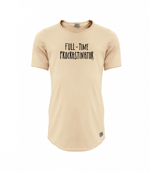 Mens T-SHIRT UAX PARKOUR LONG for man with design 1334 FULL-TIME PROCRASTINATOR in color CARAMEL