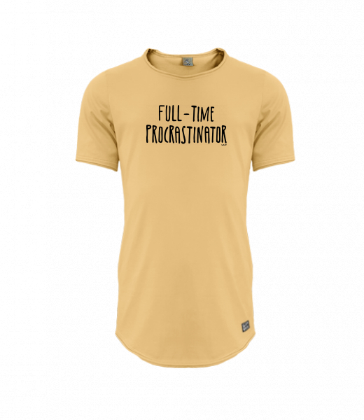 Mens T-SHIRT UAX PARKOUR LONG for man with design 1334 FULL-TIME PROCRASTINATOR in color MUSTARD