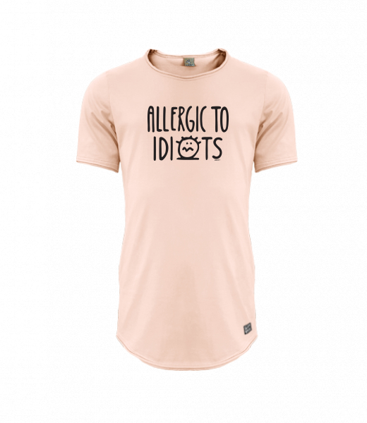 Mens T-SHIRT UAX PARKOUR LONG for man with design 1354 ALLERGIC TO IDIOTS in color CAPPUCINO