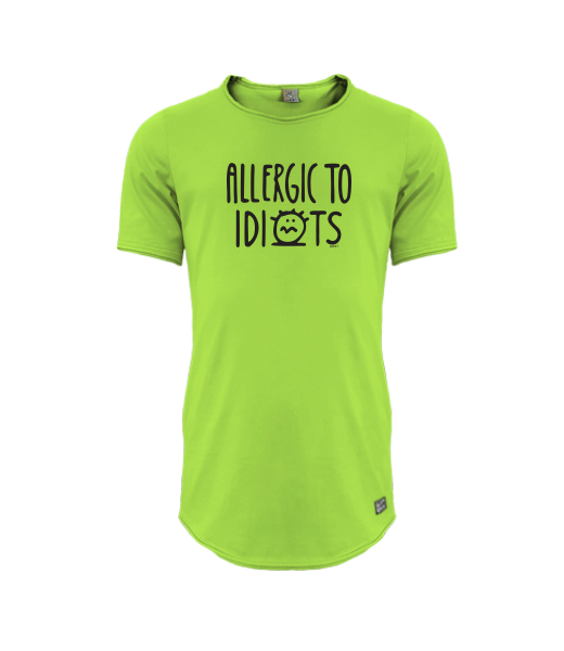 Mens T-SHIRT UAX PARKOUR LONG for man with design 1354 ALLERGIC TO IDIOTS in color PARROT GREEN