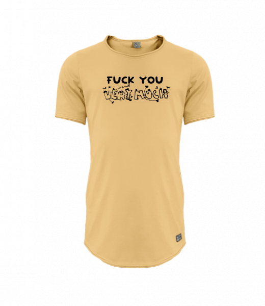 Mens T-SHIRT UAX PARKOUR LONG for man with design 1358 FU VERU MUCH in color MUSTARD